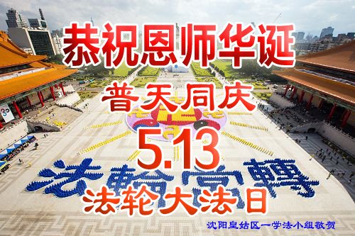 辽宁省沈阳市一大法弟子恭贺师尊华诞暨世界法轮大法日!